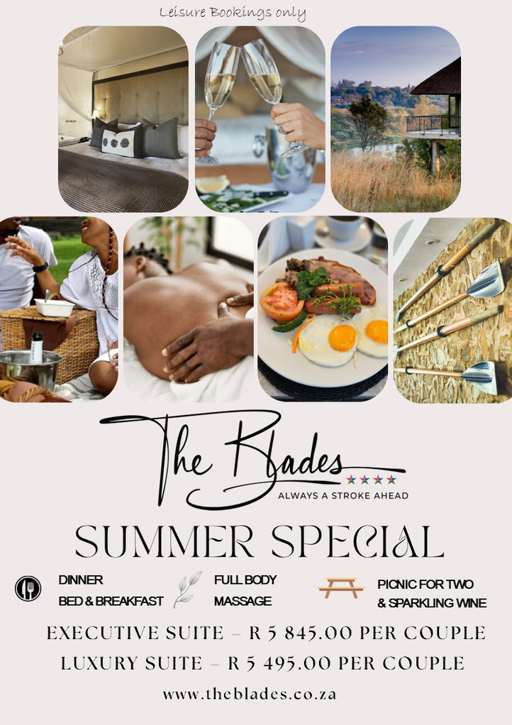 β¨ Weekend Bliss at The Blades From Friday through Sunday, enjoy a seamless blend of relaxation, romance, and tranquility. Whether youβre winding down after a busy week, spending quality time with a loved one, or simply soaking in the calm, The Blades offers the perfect setting along the serene riverbanks of Pretoria East.